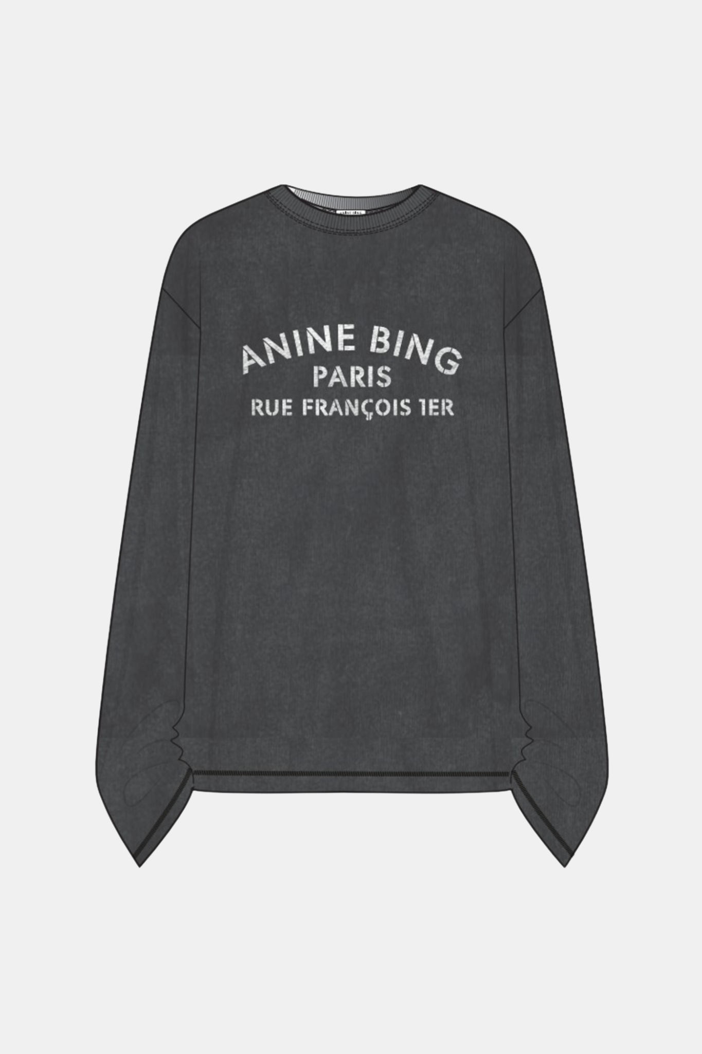 ANINE BING IVAN LONG SLEEVE PARIS STENCIL WASHED BLACK