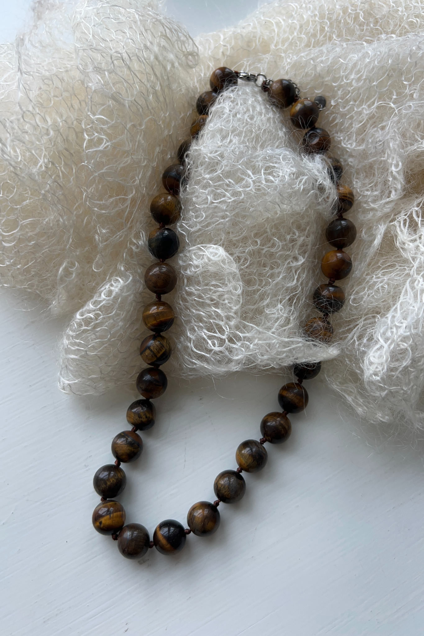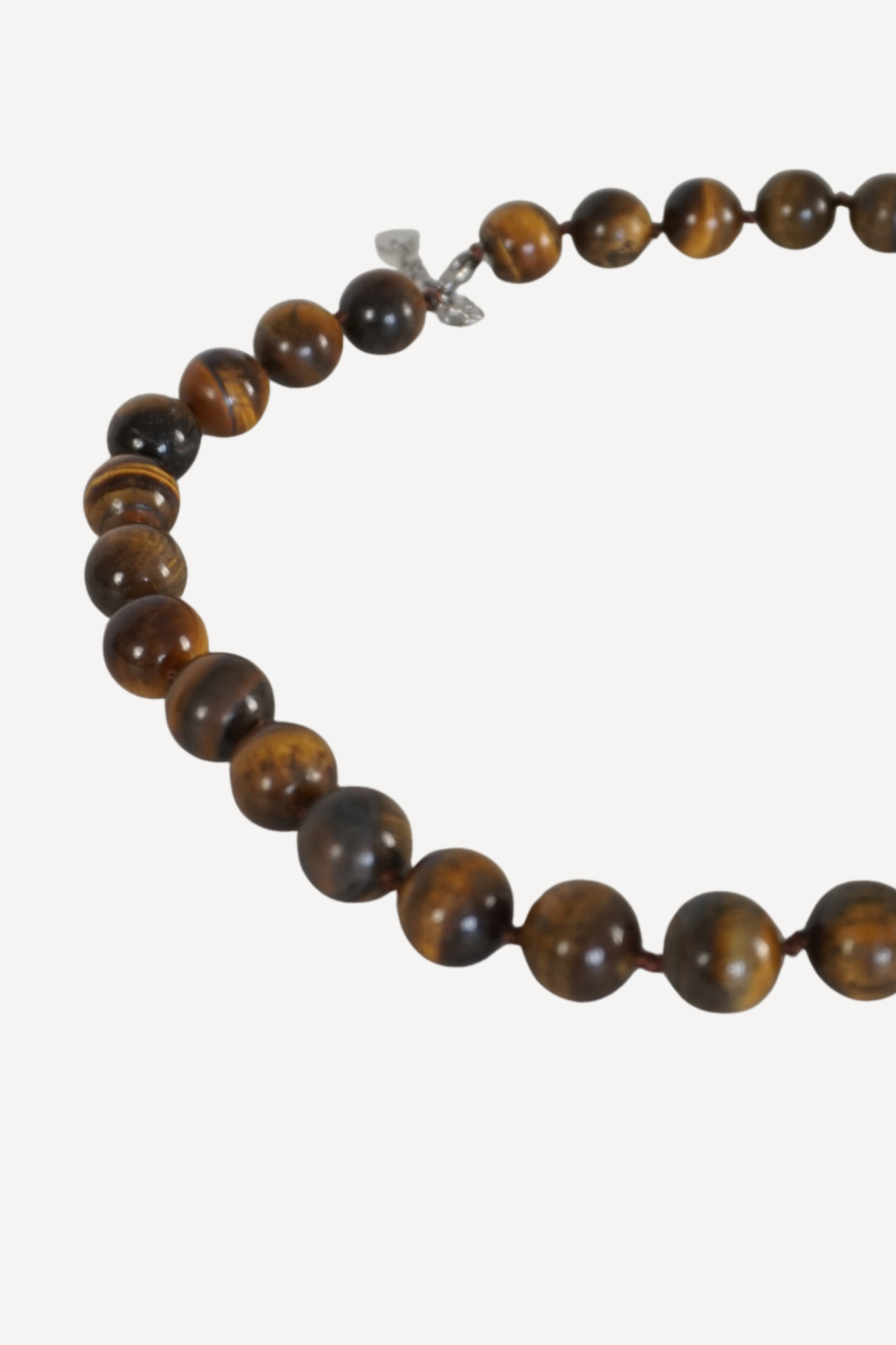 A timeless tiger eye stone necklace warm brown and golden tones. Each polished bead features the characteristic silky luster and subtle light-reflecting bands that make tiger eye so distinctive and elegant.