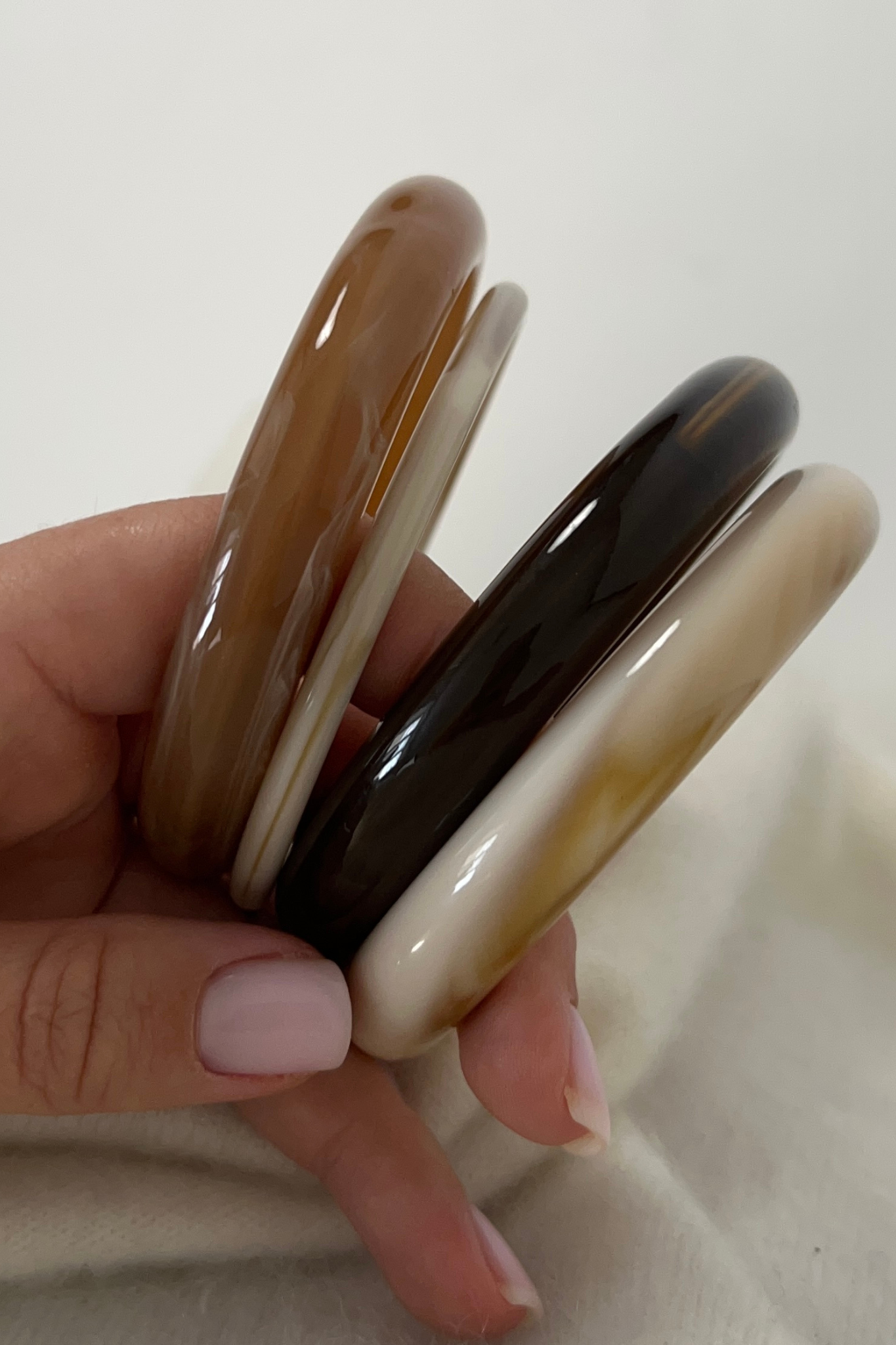Discover our collection of timeless bangles, designed to elevate any look with a polished, sculptural finish. These modern bracelets are lightweight, glossy and easy to style, whether worn alone for a minimal touch or stacked for a bold statement.