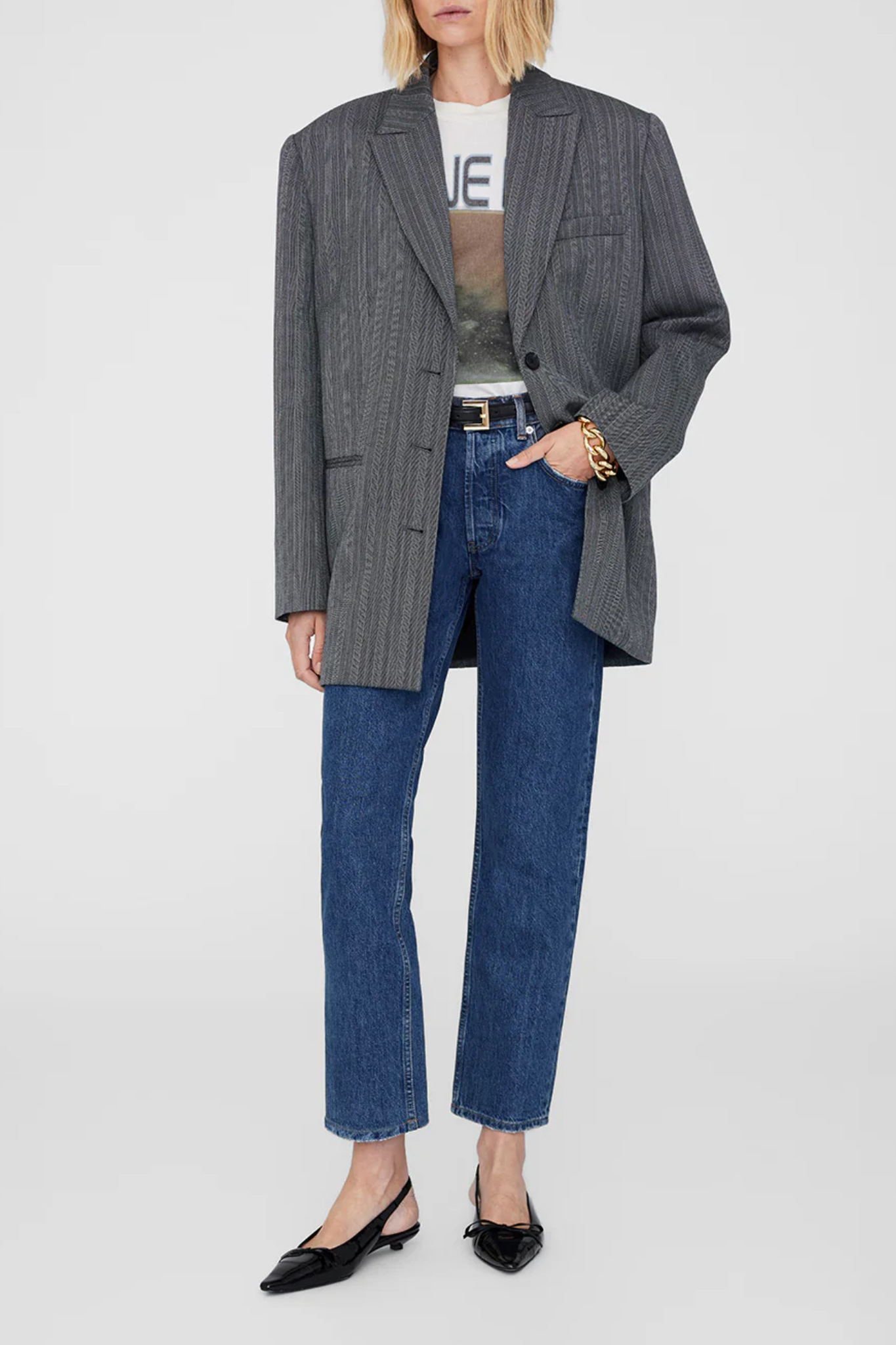 ANINE BING THEO SWEATER BLACK AND IVORYSTRIPE