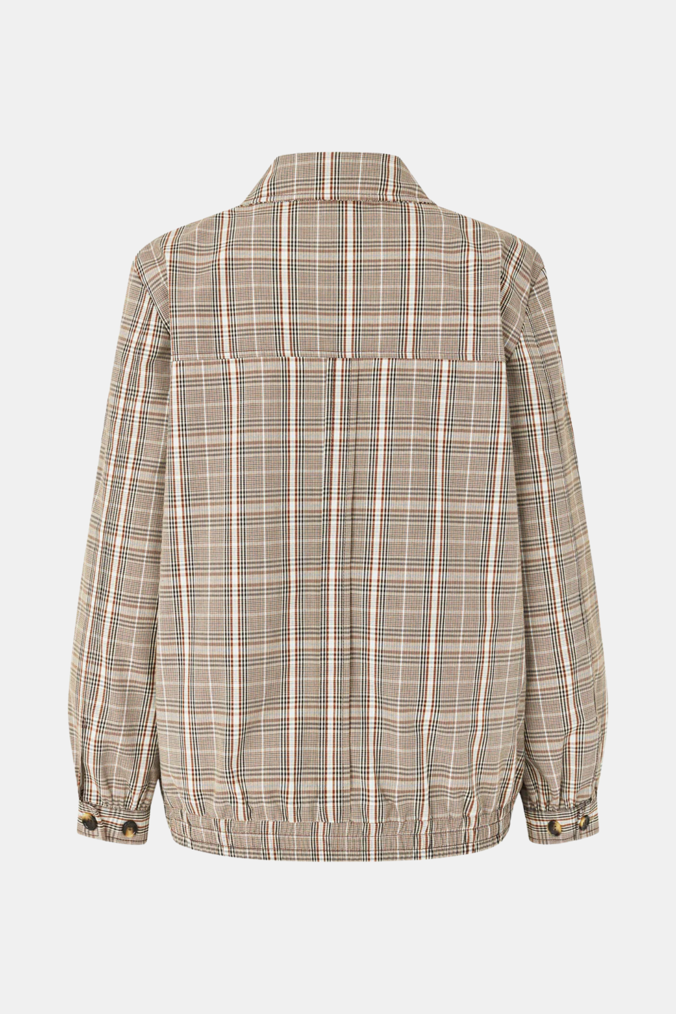 The BAUM UND PFERDGARTEN Beline Jacket – Brown Mini Check is a lightweight, checked jacket crafted from a cotton-recycled polyester blend. Designed with a loose fit, it combines comfort and casual elegance for everyday wear.