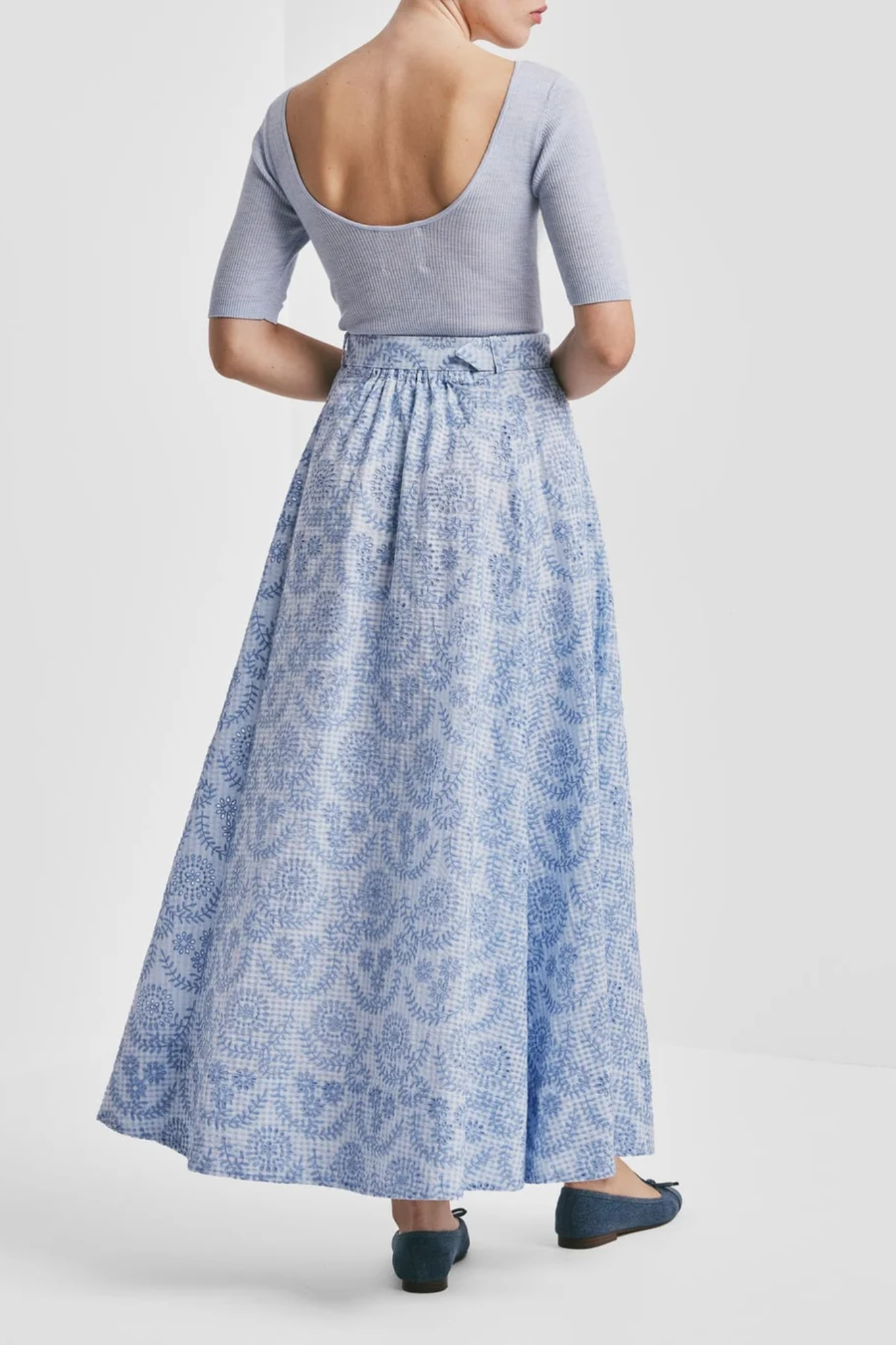 BY TIMO CHECKS MAXI SKIRT LIGHT BLUE