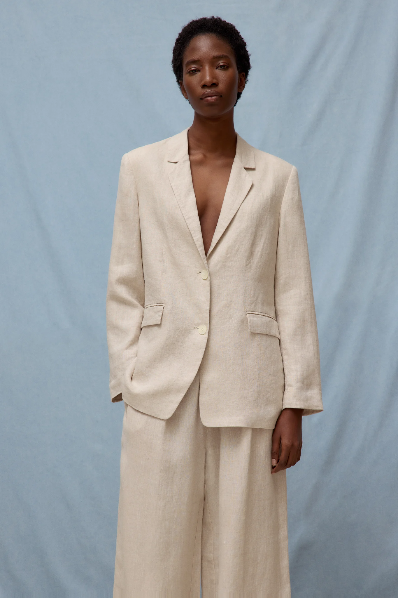 This single-breasted blazer features classic tailoring details, including an inside pocket and a functional centre vent at the back for comfort and ease of movement. A versatile piece that pairs effortlessly with both casual and tailored outfits.
