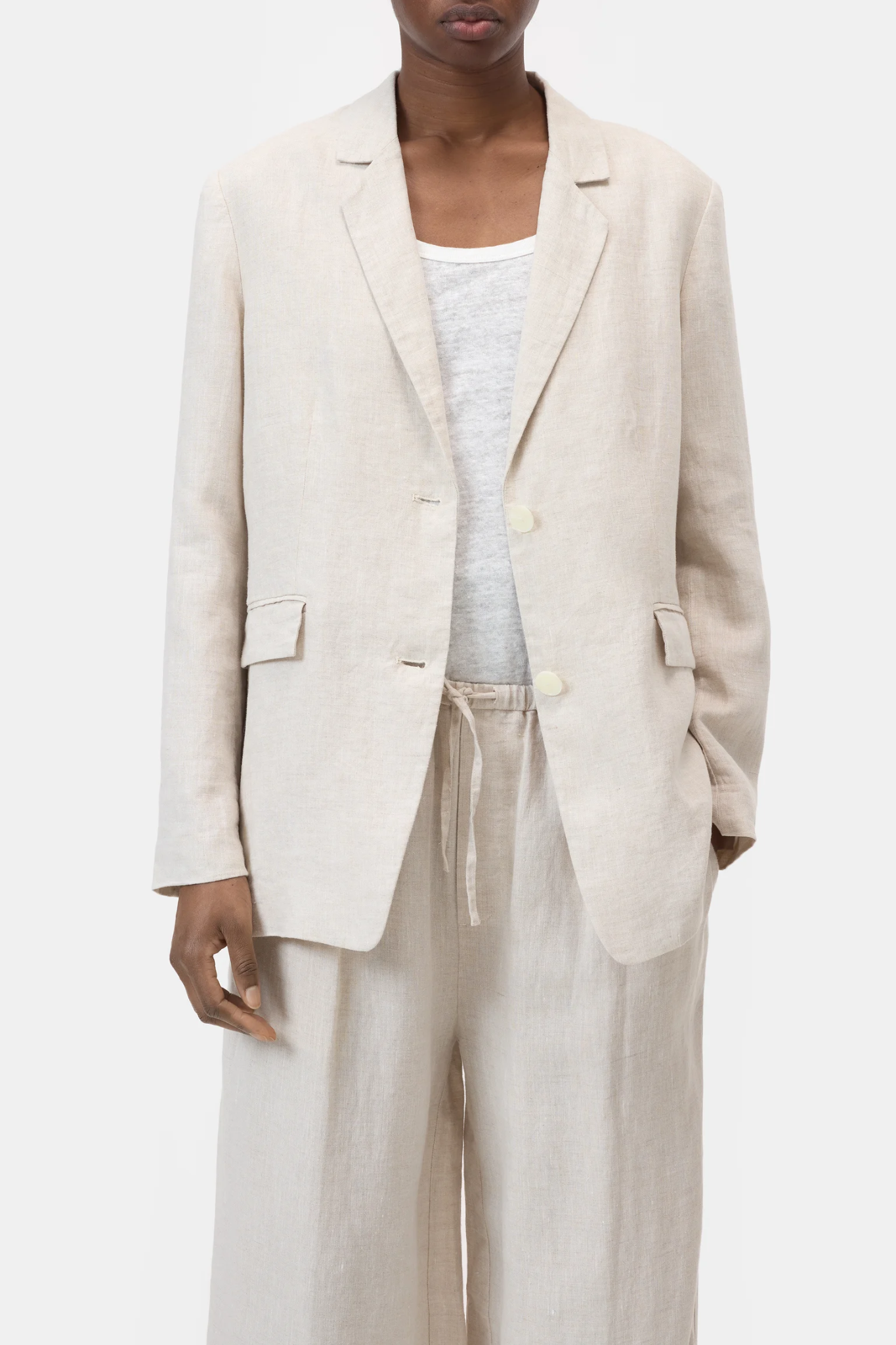 CLOSED LOLA BLAZER MUD GREY is a timeless linen blazer crafted from pure linen with a special rinse wash that enhances the fabric’s natural texture and soft feel. Designed with a regular fit and straight silhouette, it offers a clean and modern look that is easy to style.