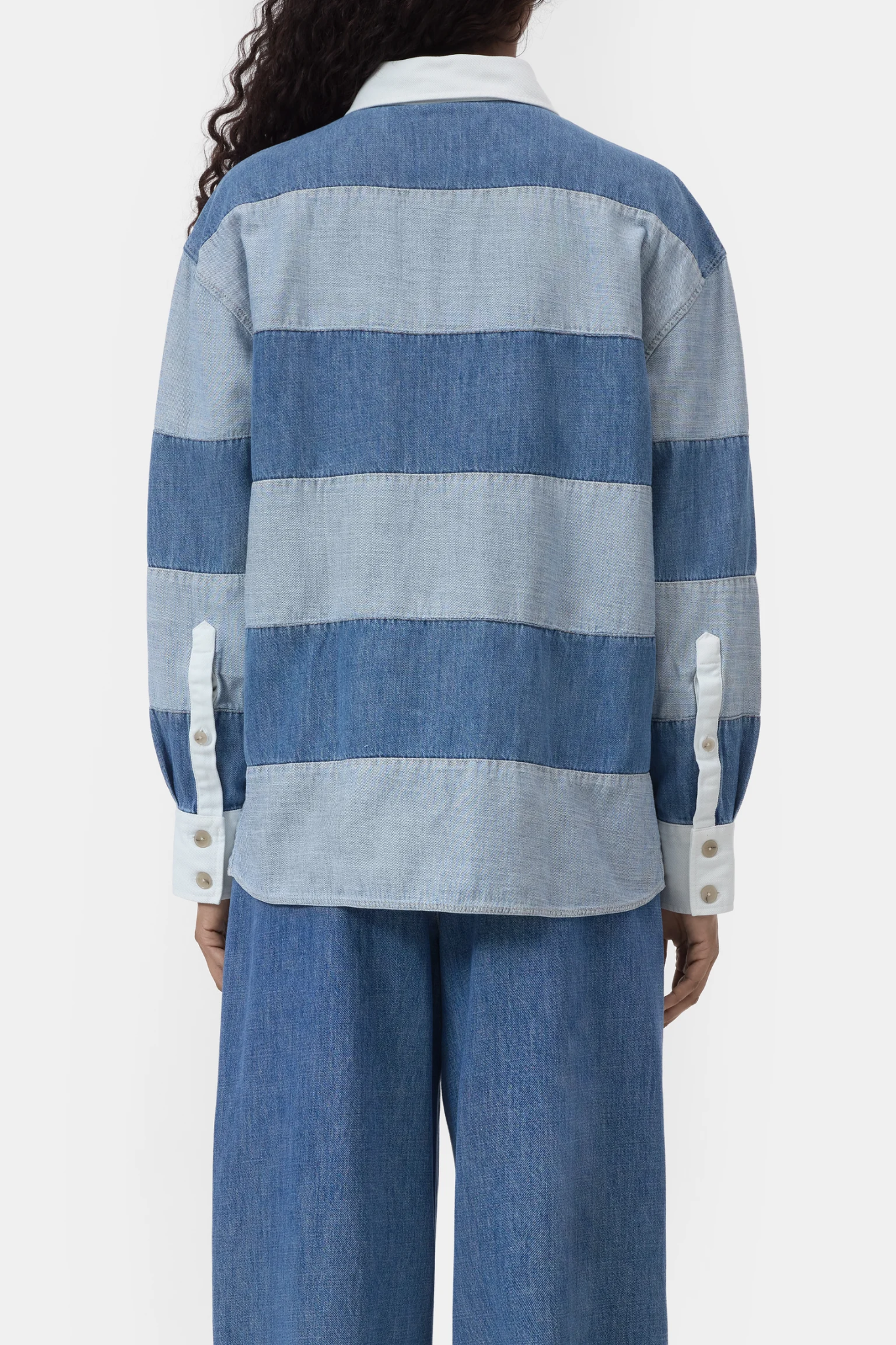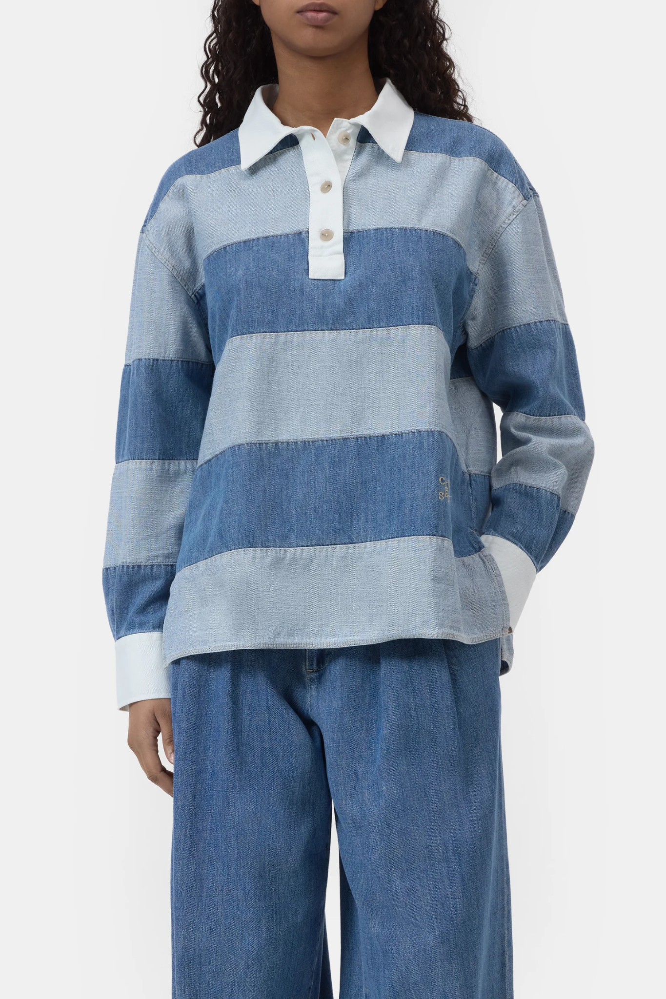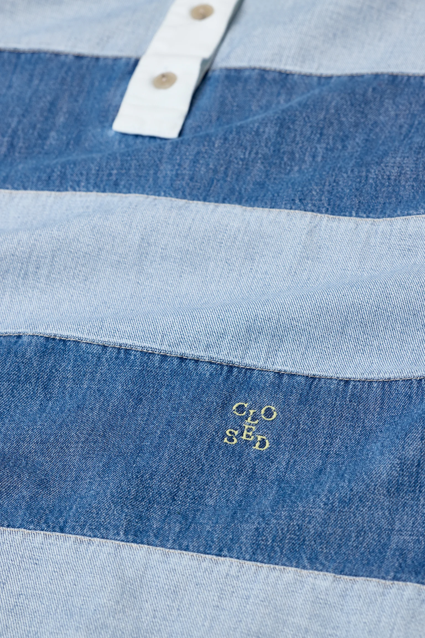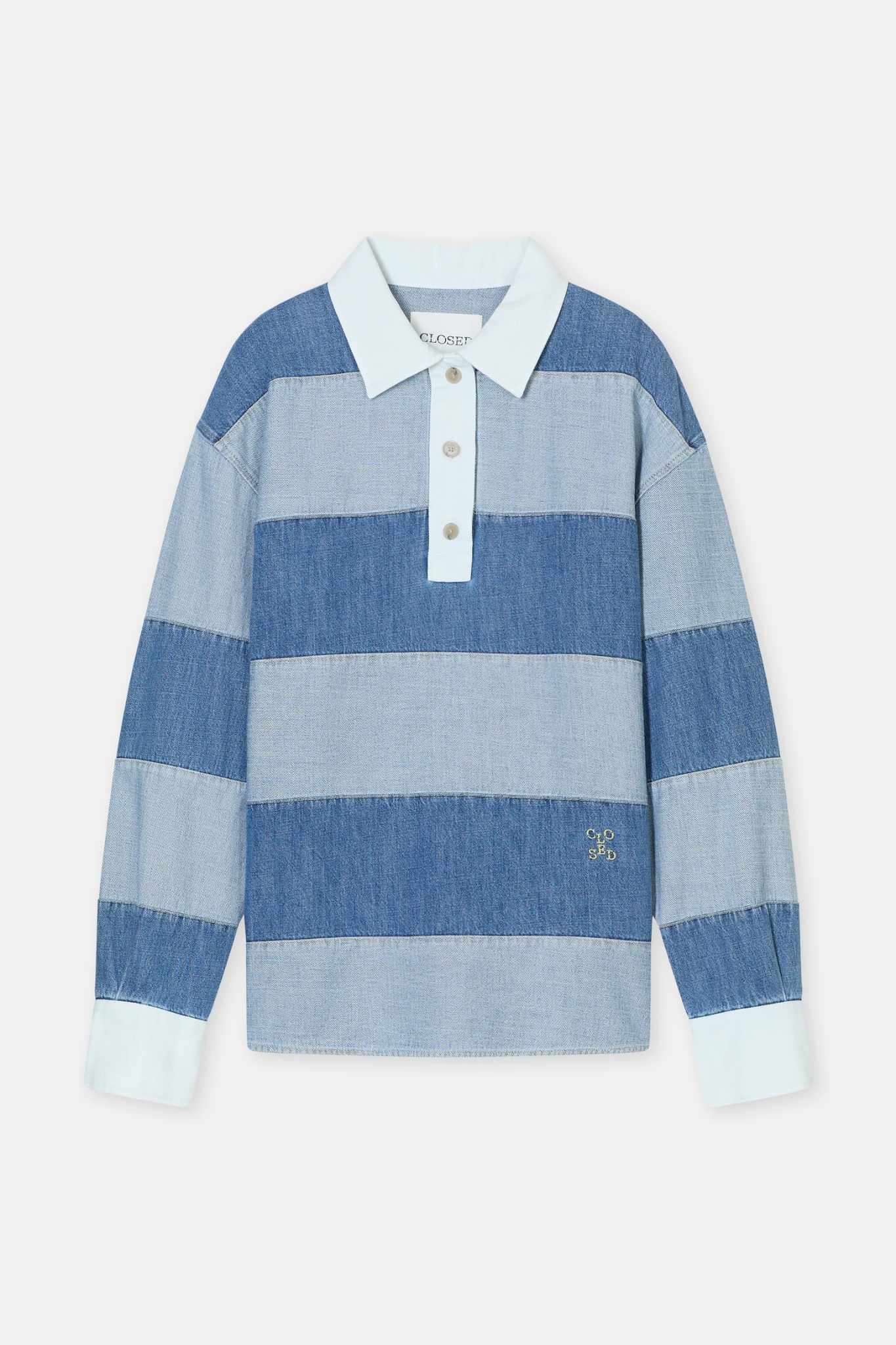 CLOSED RUGBY SHIRT LIGHT BLUE is a modern take on the classic rugby shirt, crafted from super-soft and lightweight denim (8.5 oz.) in two complementary shades of blue. The carefully constructed design offers a relaxed yet refined look, perfect for effortless everyday styling.