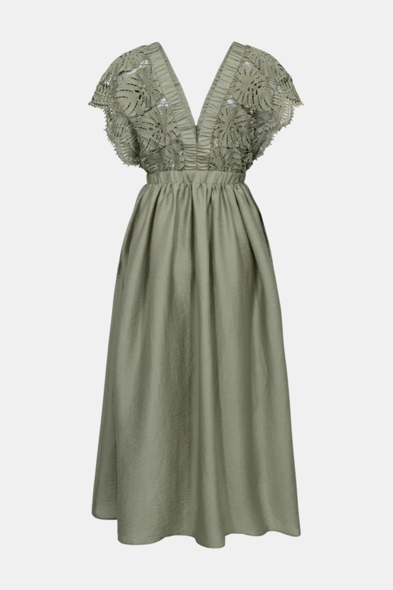 CPH MUSE COLE DRESS SEAGRASS is a lightweight and elegant dress designed with delicate lace detailing at the top and a lined front for added comfort and coverage.