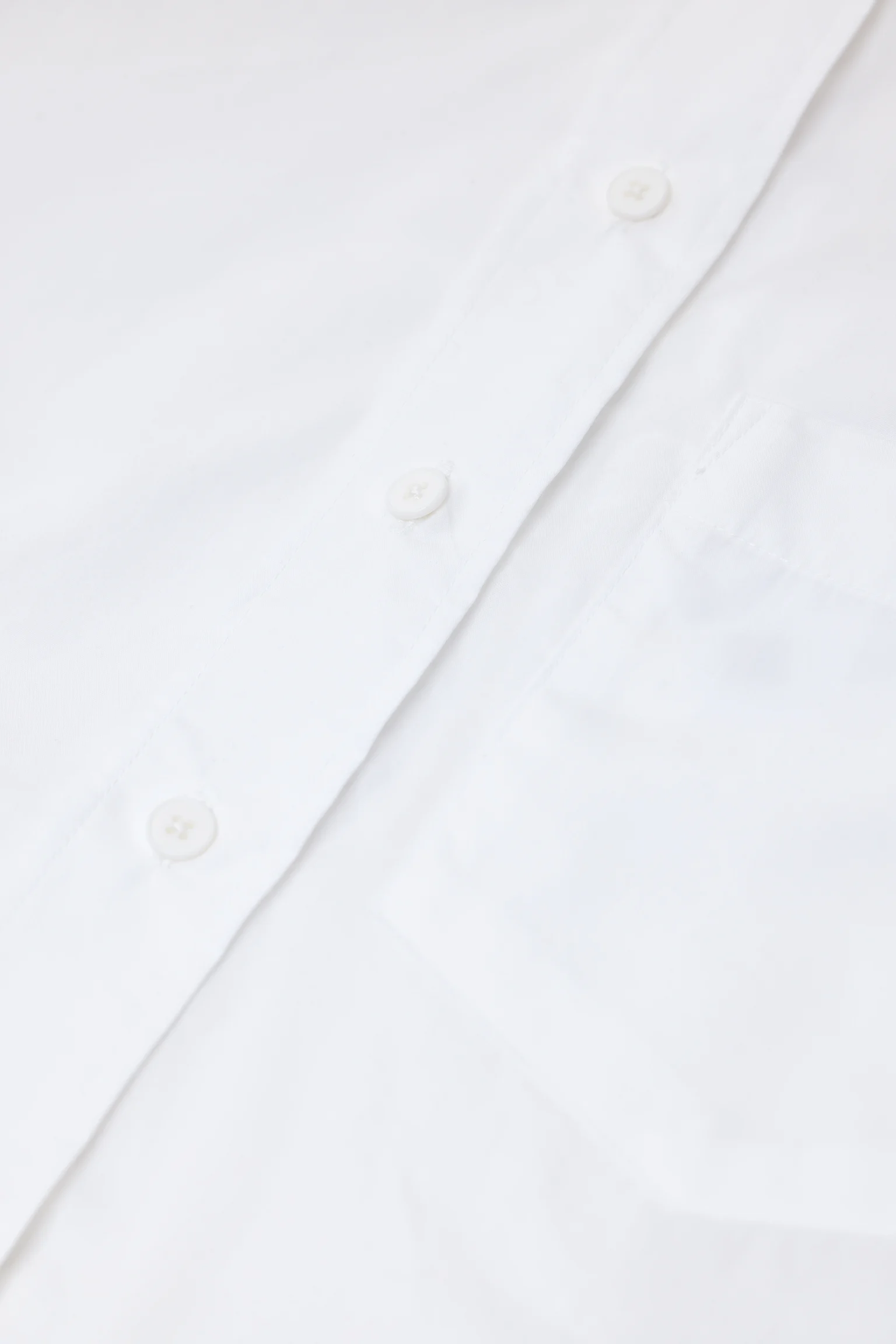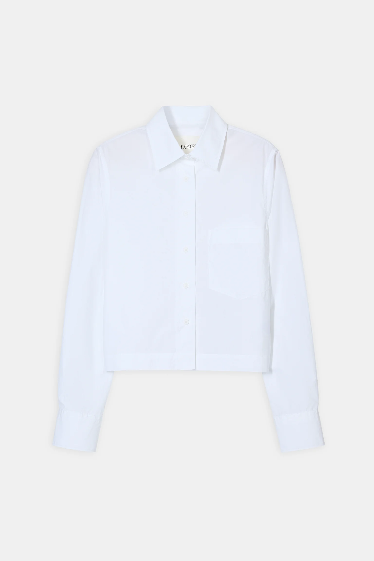 This classic cropped blouse comes in a shorter length. The organic cotton poplin provides a pleasant paper-like feel. Details like a breast pocket with Closed’s signature seam, a straight hem, and tonal buttons complete the design. Sustainably crafted in Portugal.
