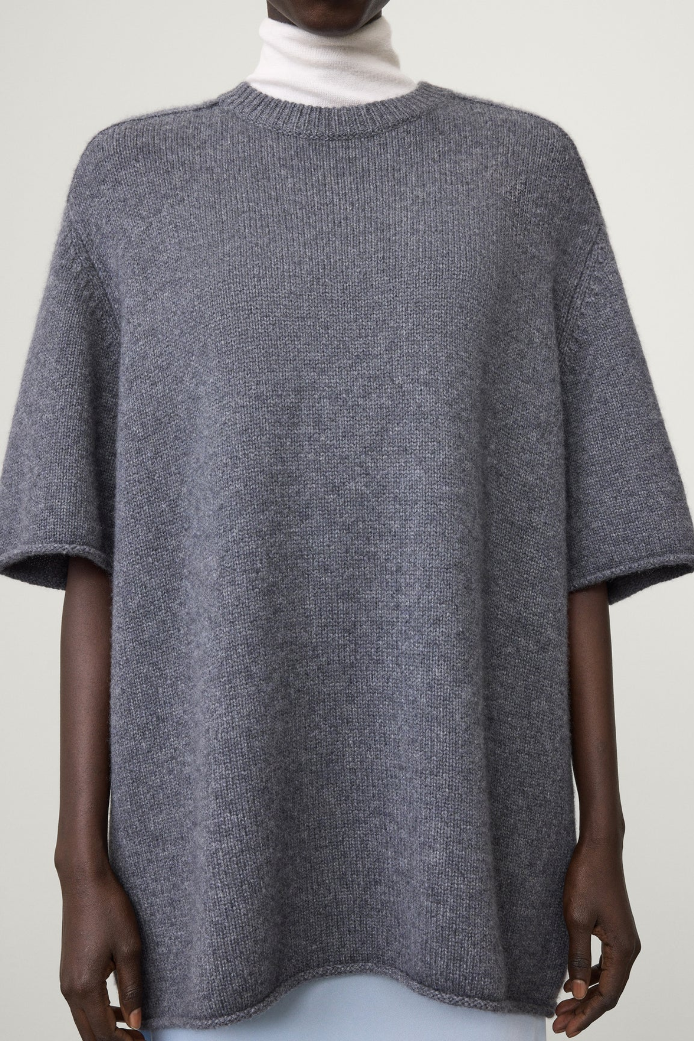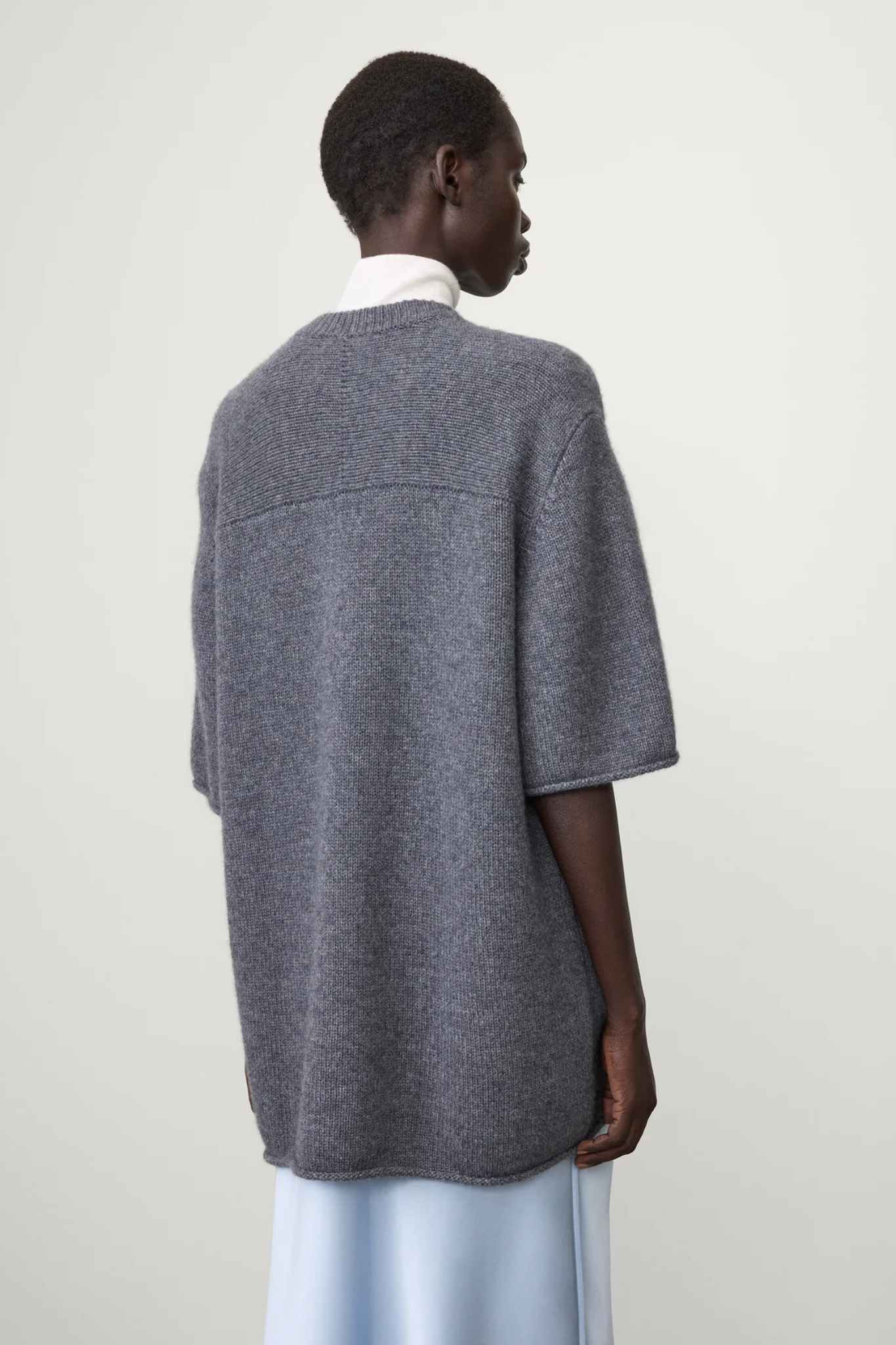 A spacious statement, the Elvina sweater is crafted in heavy knit cashmere to a textured look and feel. The relaxed fit, generous silhouette is widened and elongated into generous proportions and features a crew neck, dropped shoulders, half-length sleeves and raw trims.