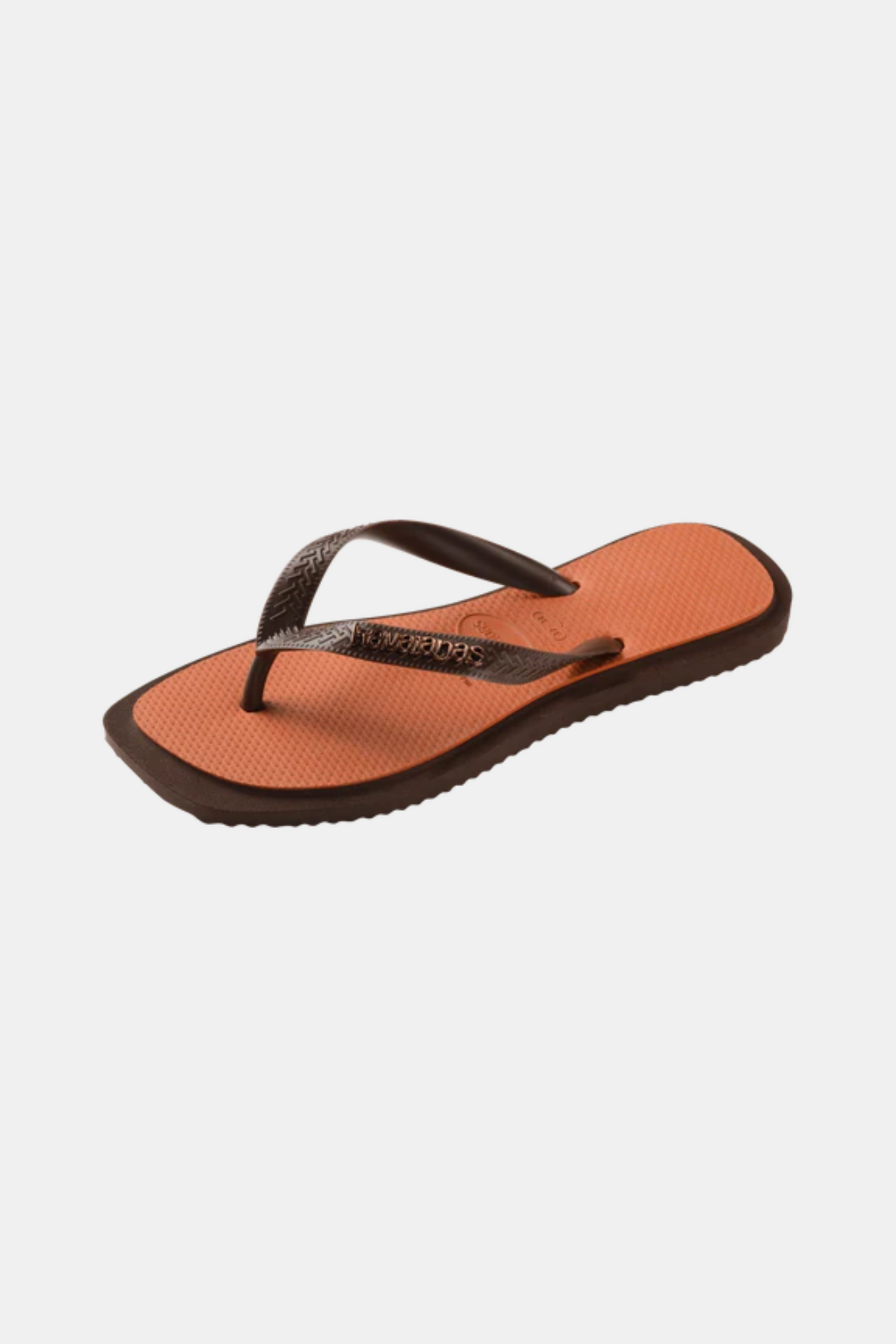 Step up your summer footwear game with the Havaianas Top Square Fusion in Dark Brown — a modern take on the iconic Top flip flop. Designed specifically for women, this elevated style features a trendy square toe and a double tractor sole that adds height, comfort, and a bold, contoured effect.