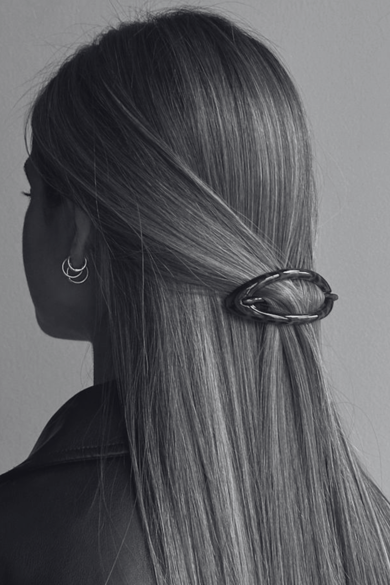 This hair pin clip is a versatile accessory designed to subtly elevate your outfit. Easy to use and style in multiple ways, it works both as a functional clip and a refined detail in your hairstyle. Scroll down to see the images for inspiration on different ways to wear it.
