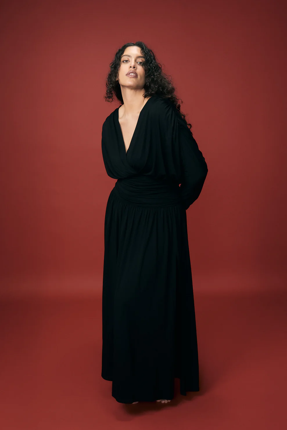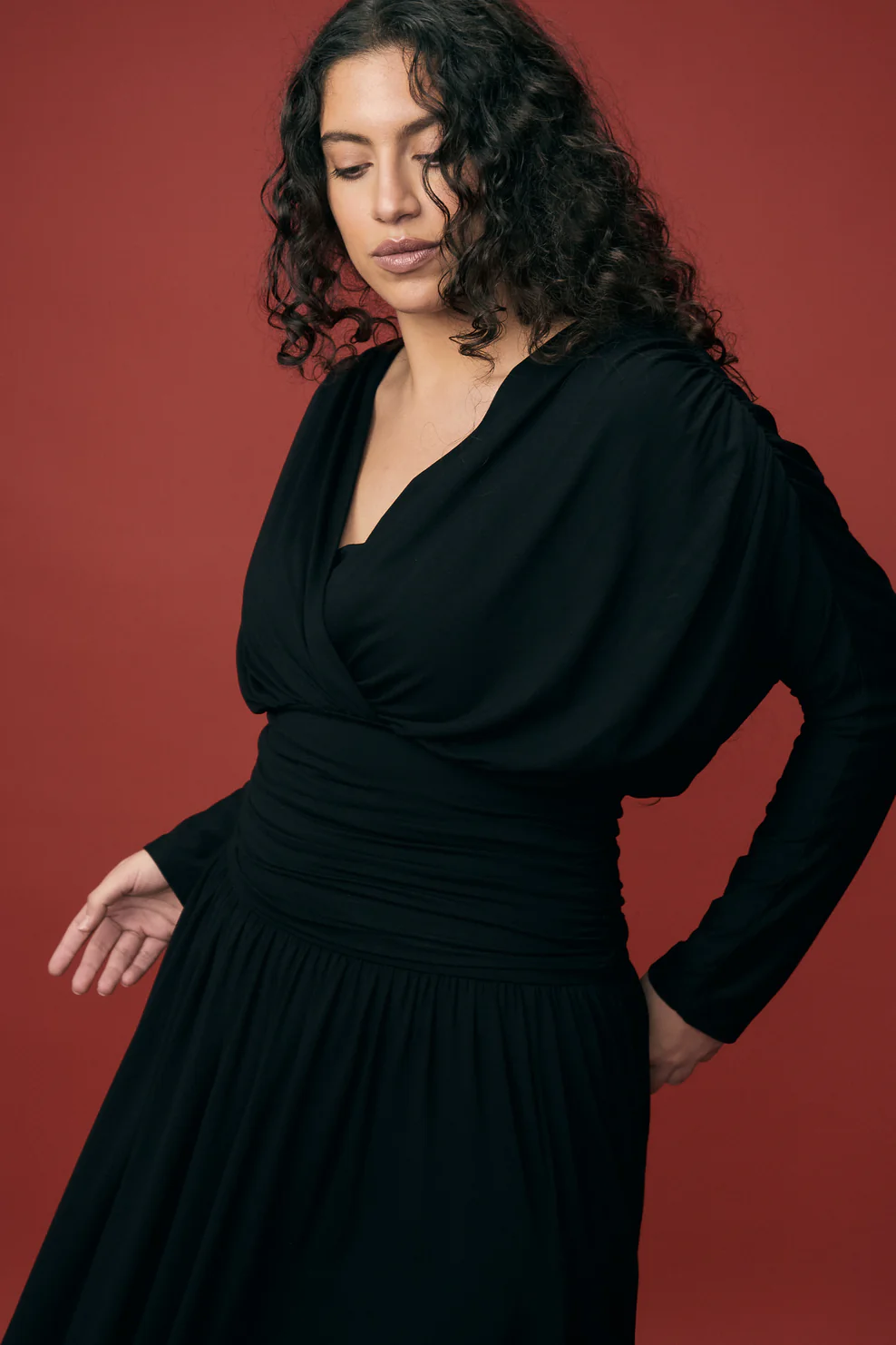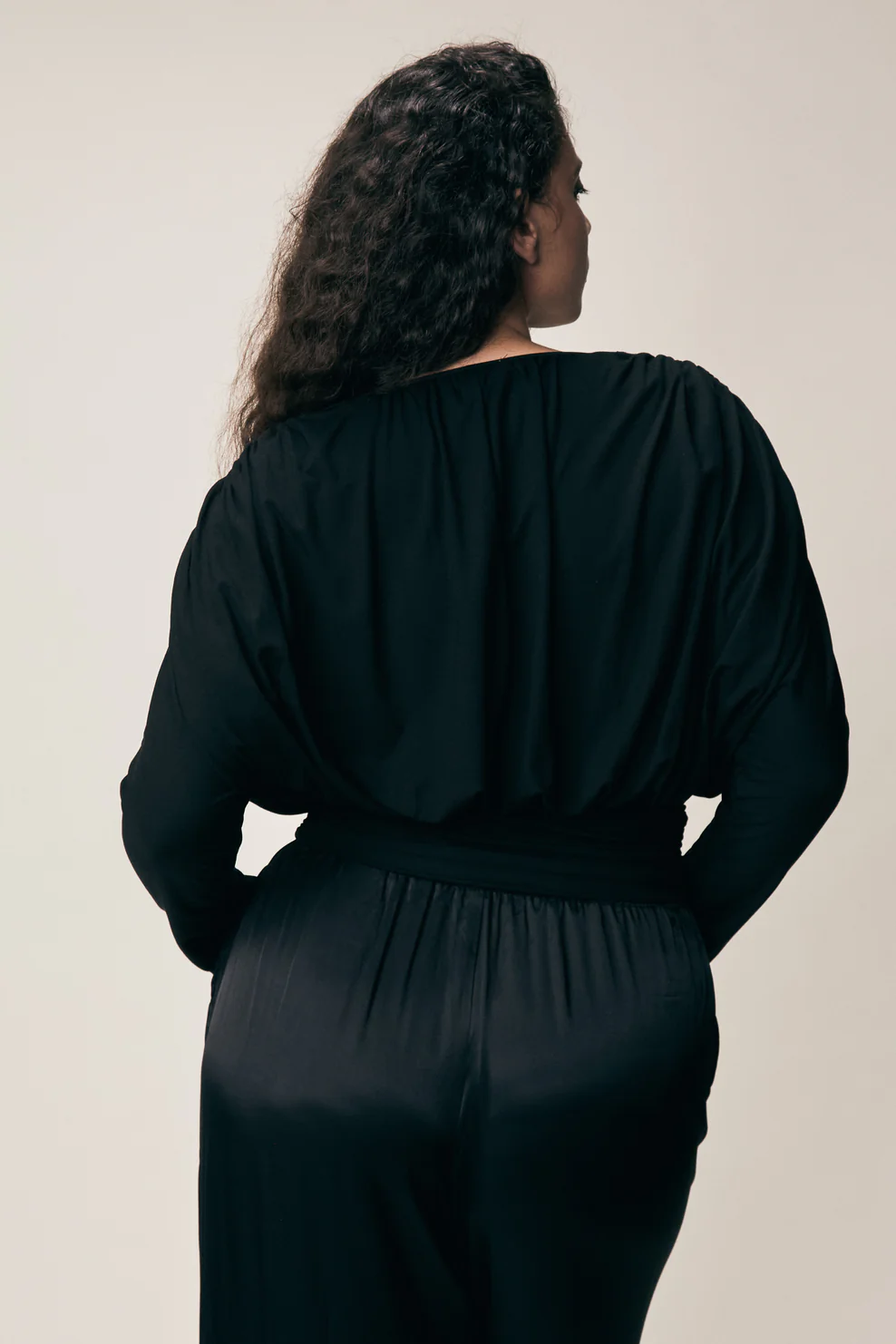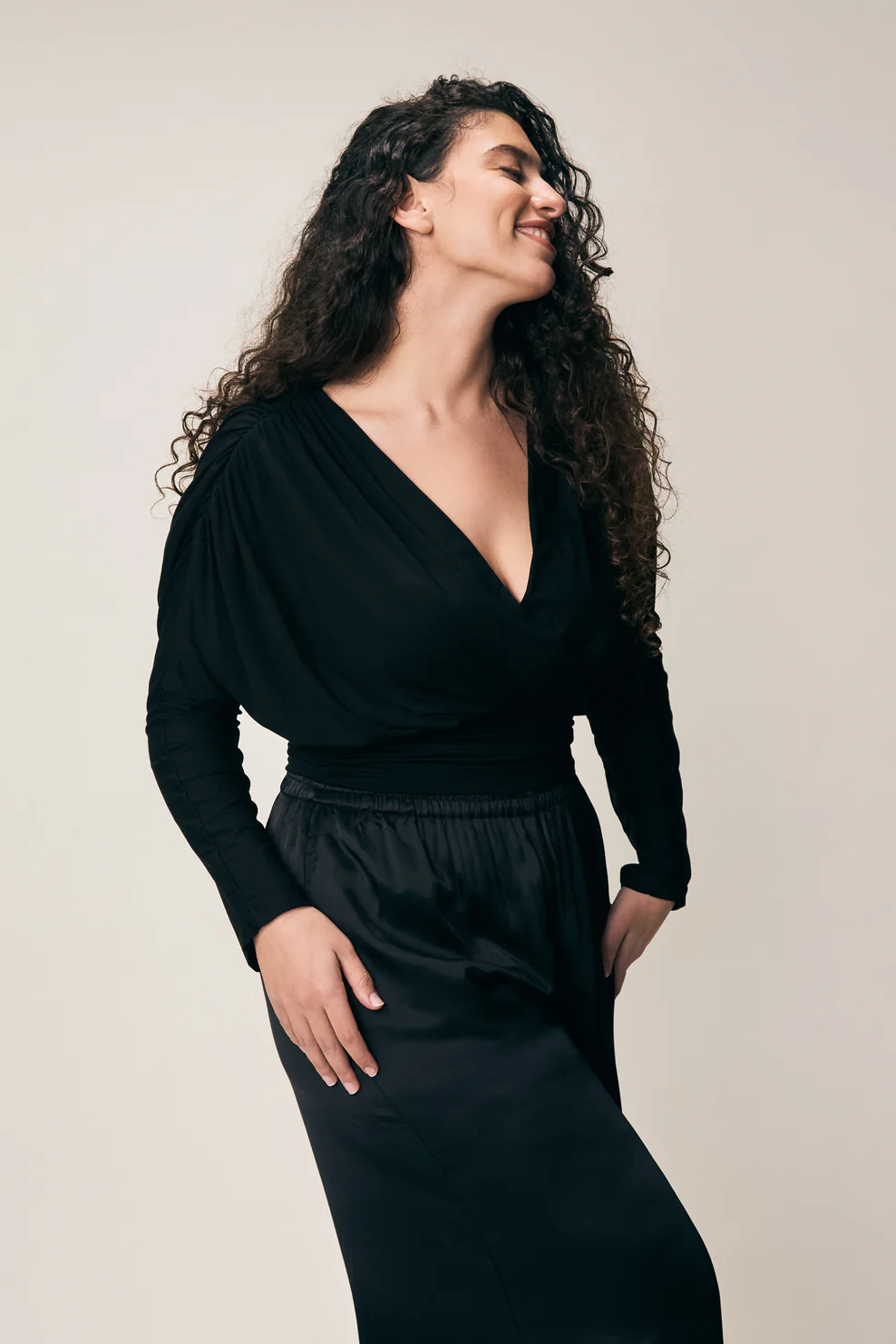 The VIVEH Salvia top is crafted with the VIVEH signature fabric, an ECOVERO™ viscose jersey which drapes beautifully and sits tight around the body. The design features long sleeves with a loose fit at the shoulders and a snug waist. The Salvia is versatile as it can be worn two ways, with a contemporary, chic high neckline or a V-neckline for a more classic, glamorous look.