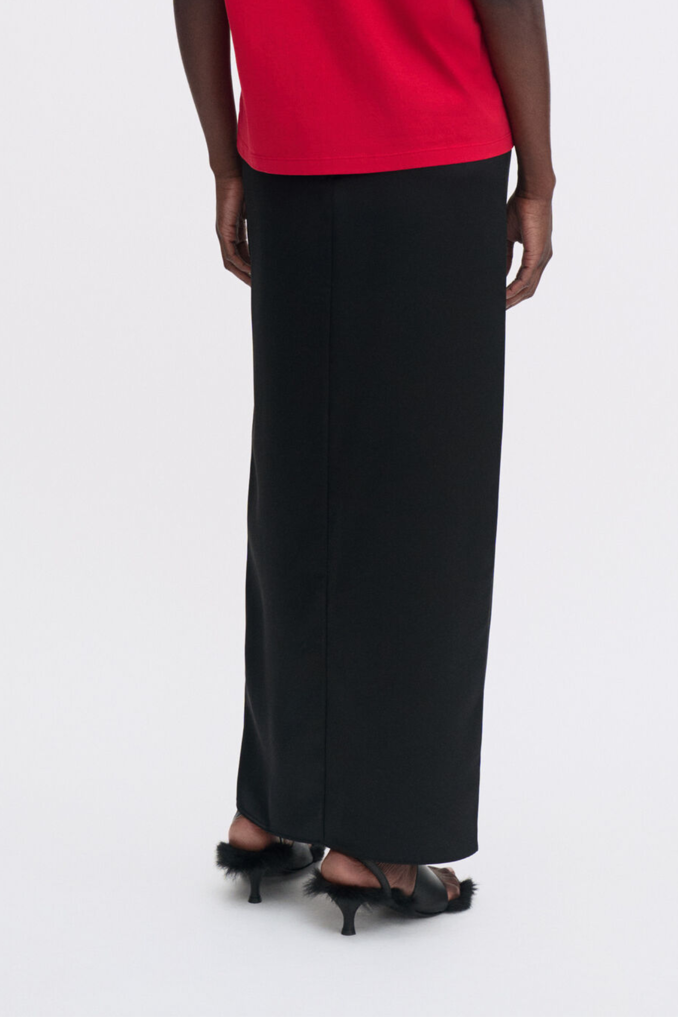 The Slim Satin Slip Skirt from Filippa K is a timeless wardrobe essential, combining elegance and minimalism. Crafted from lightweight Naia™ acetate satin with a subtle shine, this women’s maxi slip skirt features a slim fit, a mid-rise waist, and a sleek side slit for ease of movement. The concealed back zip keeps the look clean and refined, while the unlined design gives it a fluid drape. Perfect for evening occasions, pair it with a fitted black top for a chic, understated outfit.
