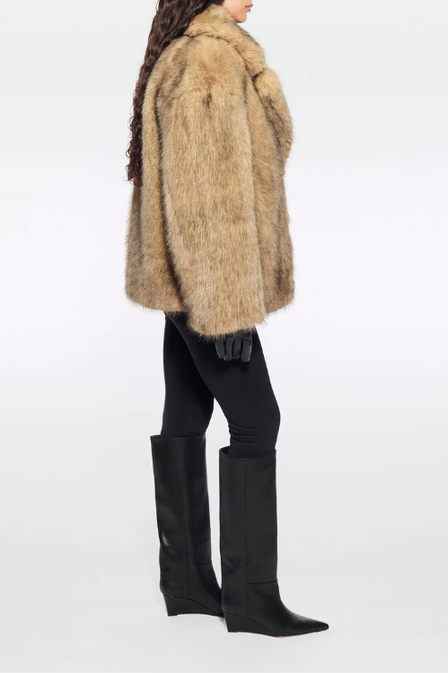 The Valentina Jacket in Natural is a timeless wardrobe essential crafted from ultra-soft faux fur. Designed with a relaxed fit and a straight silhouette, it combines cozy comfort with effortless sophistication.