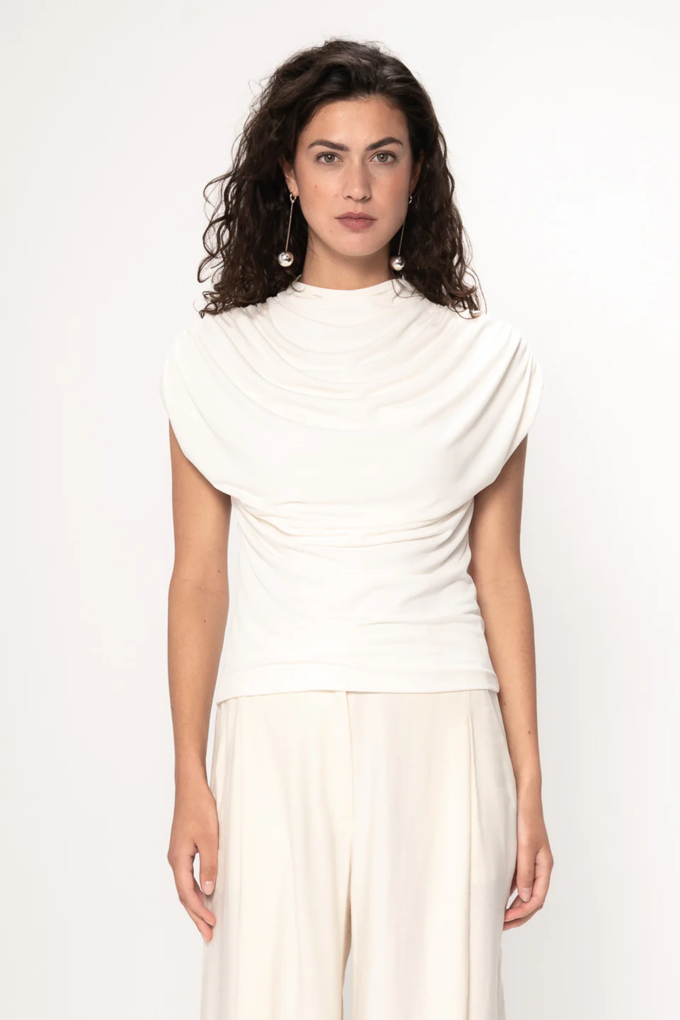 Designed with versatility in mind, the Raza Top moves effortlessly between everyday wear and more elevated occasions. Its minimalist design and soft coconut milk shade make it an easy piece to style with tailored trousers, skirts, or denim.