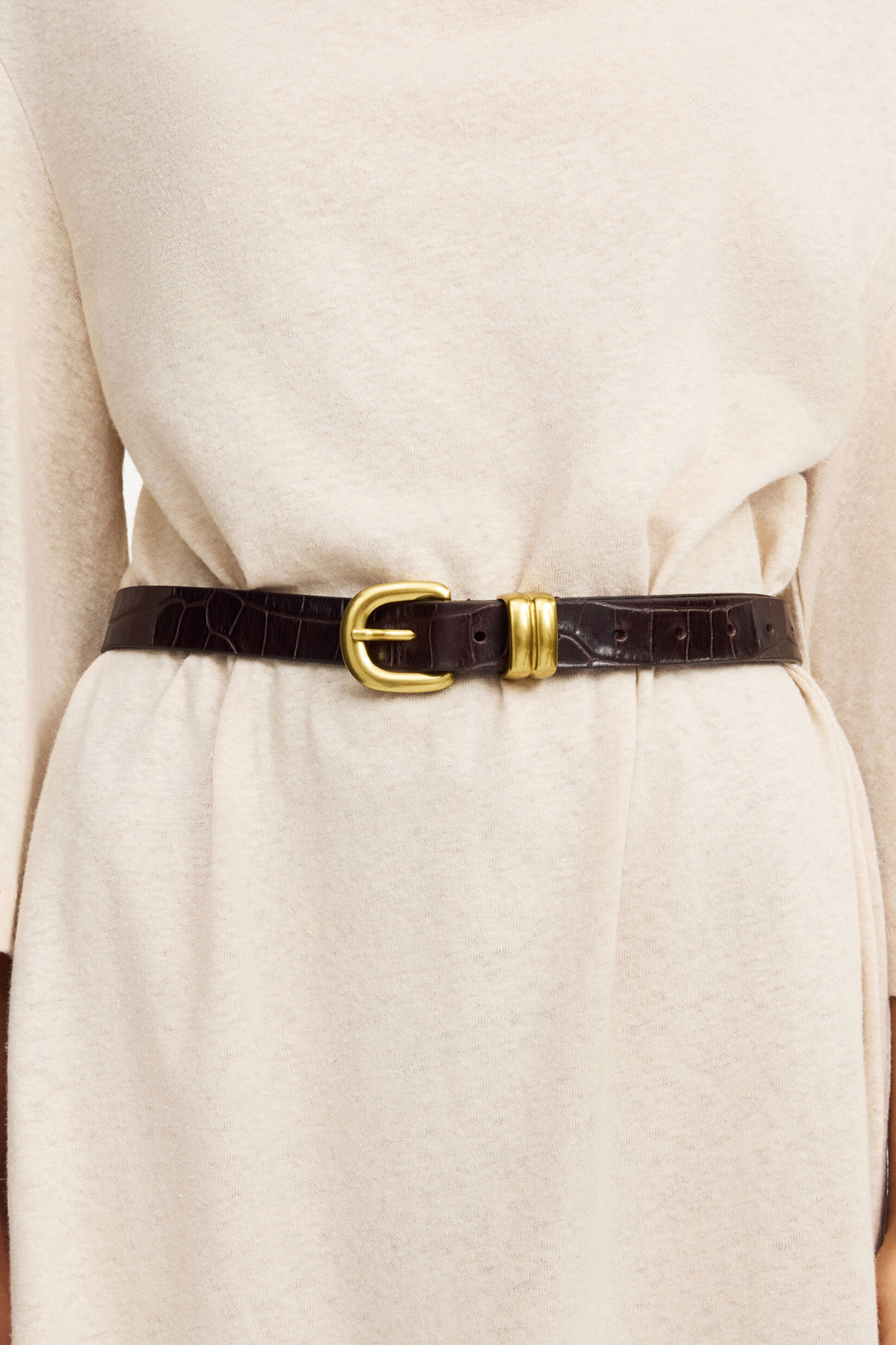 The Zoilo Belt in Dark Earth is a timeless accessory designed to add depth and polish to any spring or year-round ensemble. Crafted from buttery soft leather, it features a gold-tone metallic buckle for a sleek, effortless finish.